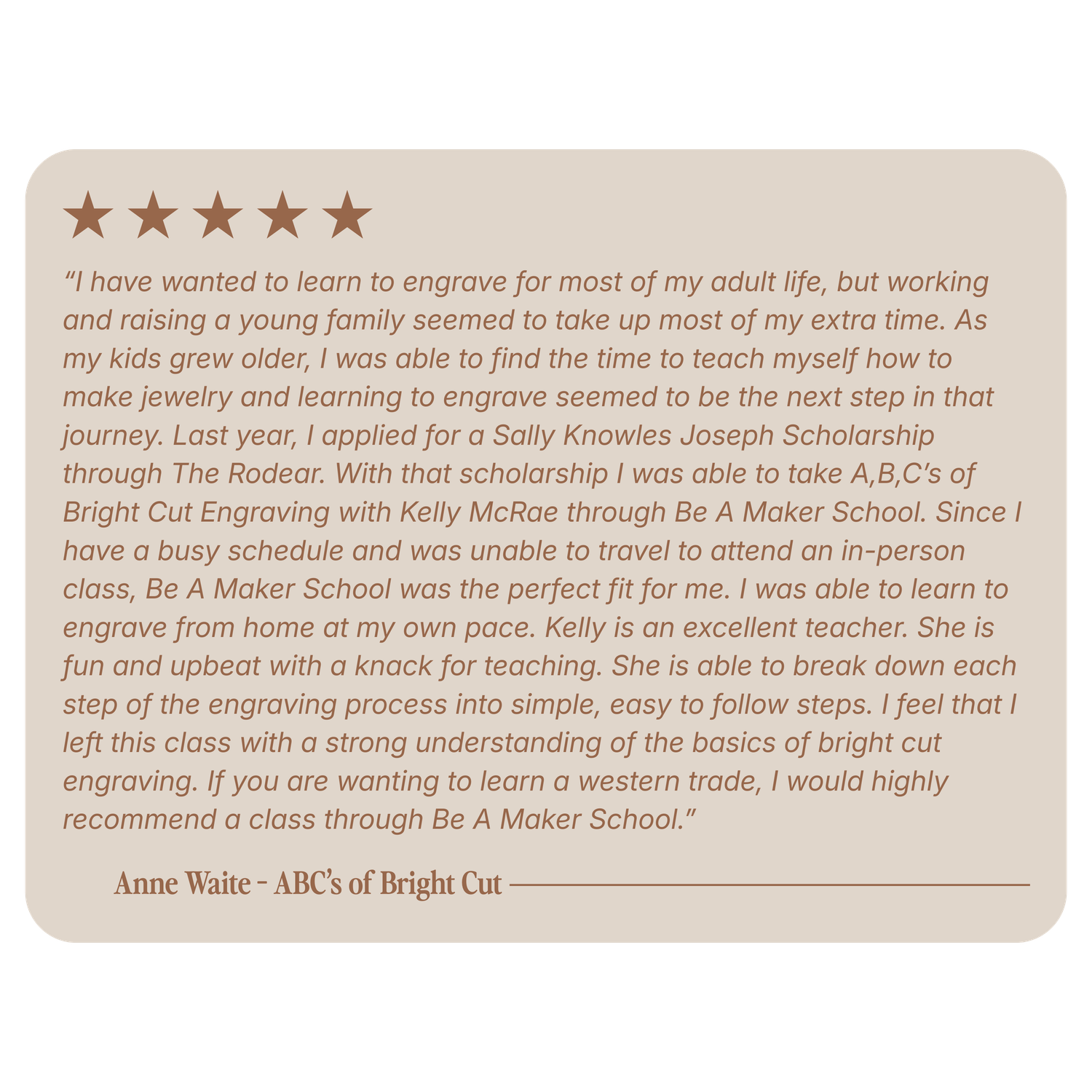 This course gives you the foundation that Kelly strongly believes is the key to engraving success.