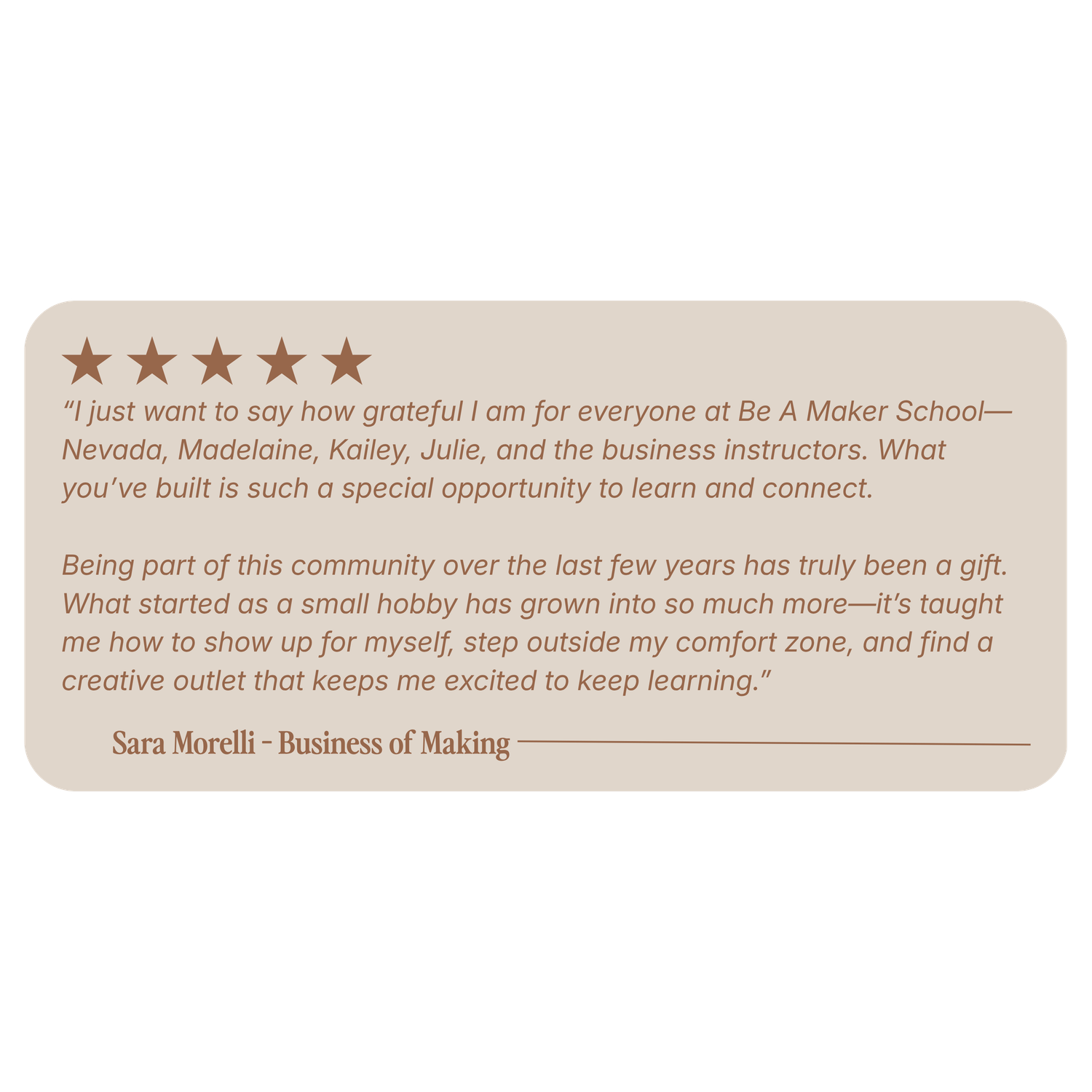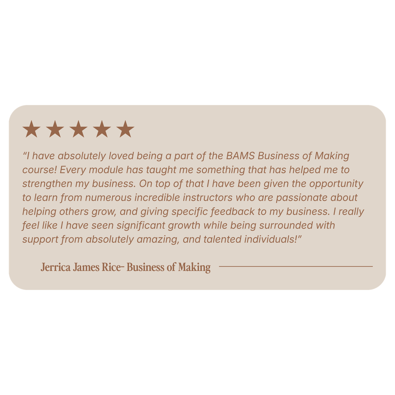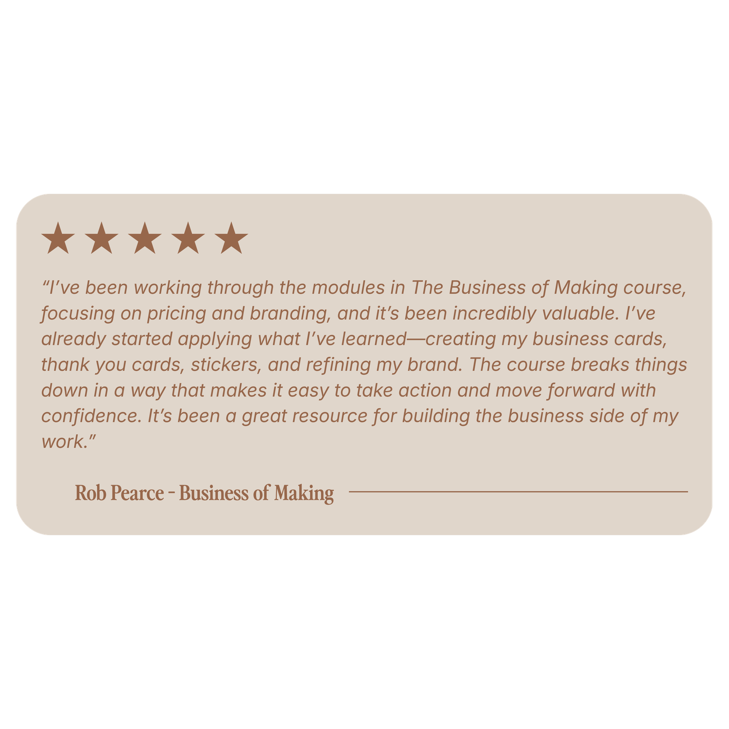 The Business of Making is the course that gives you the tools, systems, and confidence to turn passion into something long-lasting.