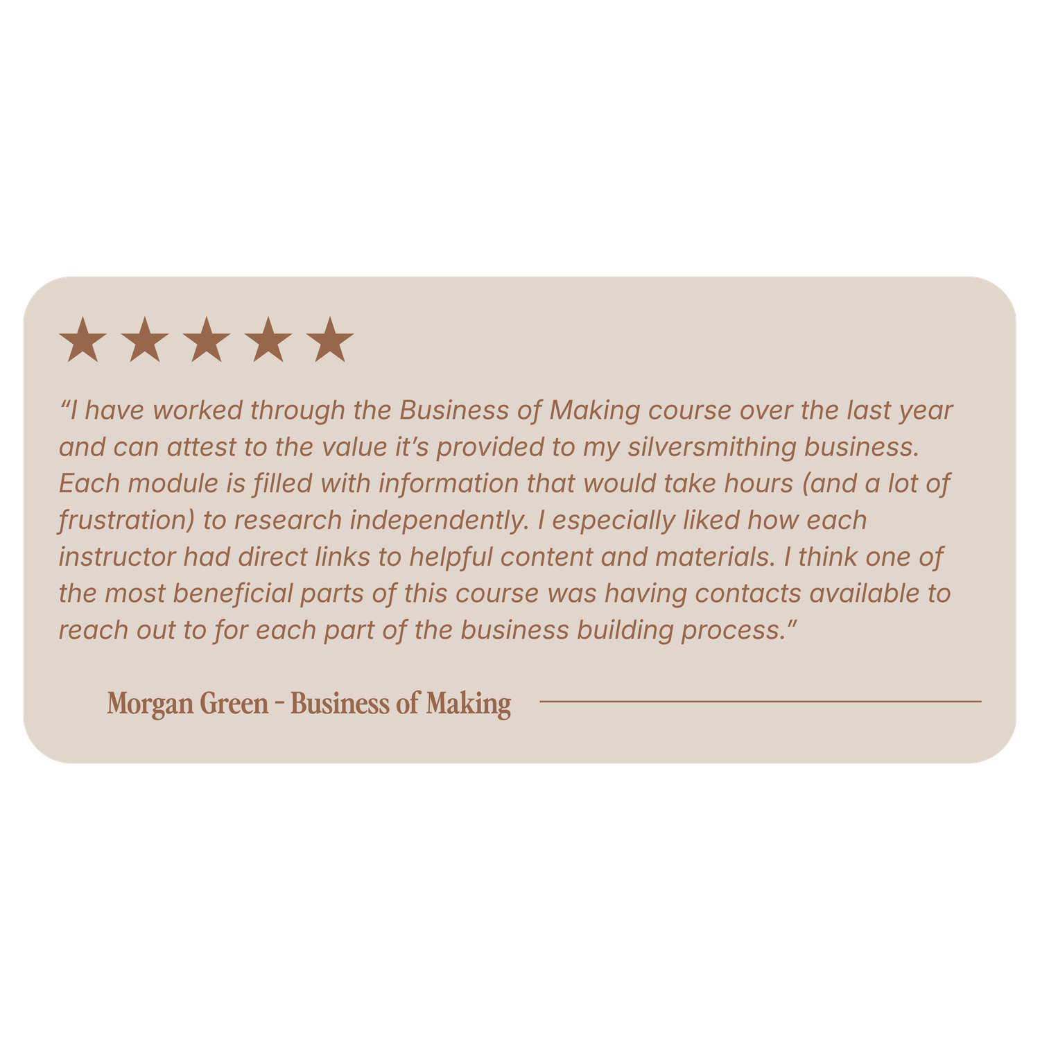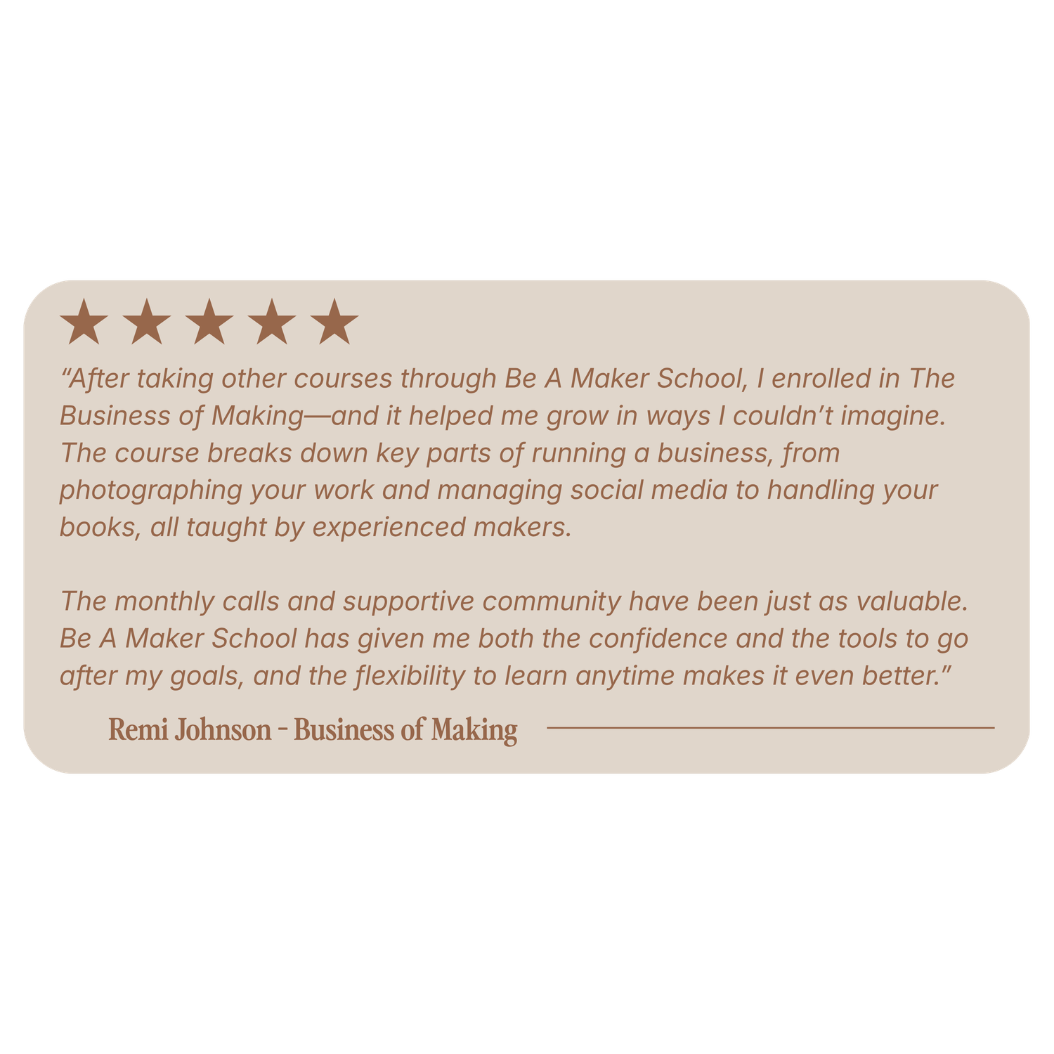 That's where The Business of Making comes in—an online course built for makers who wear all the hats. Learn how to run, grow, and sustain your business so you can keep creating without burning out or going under.