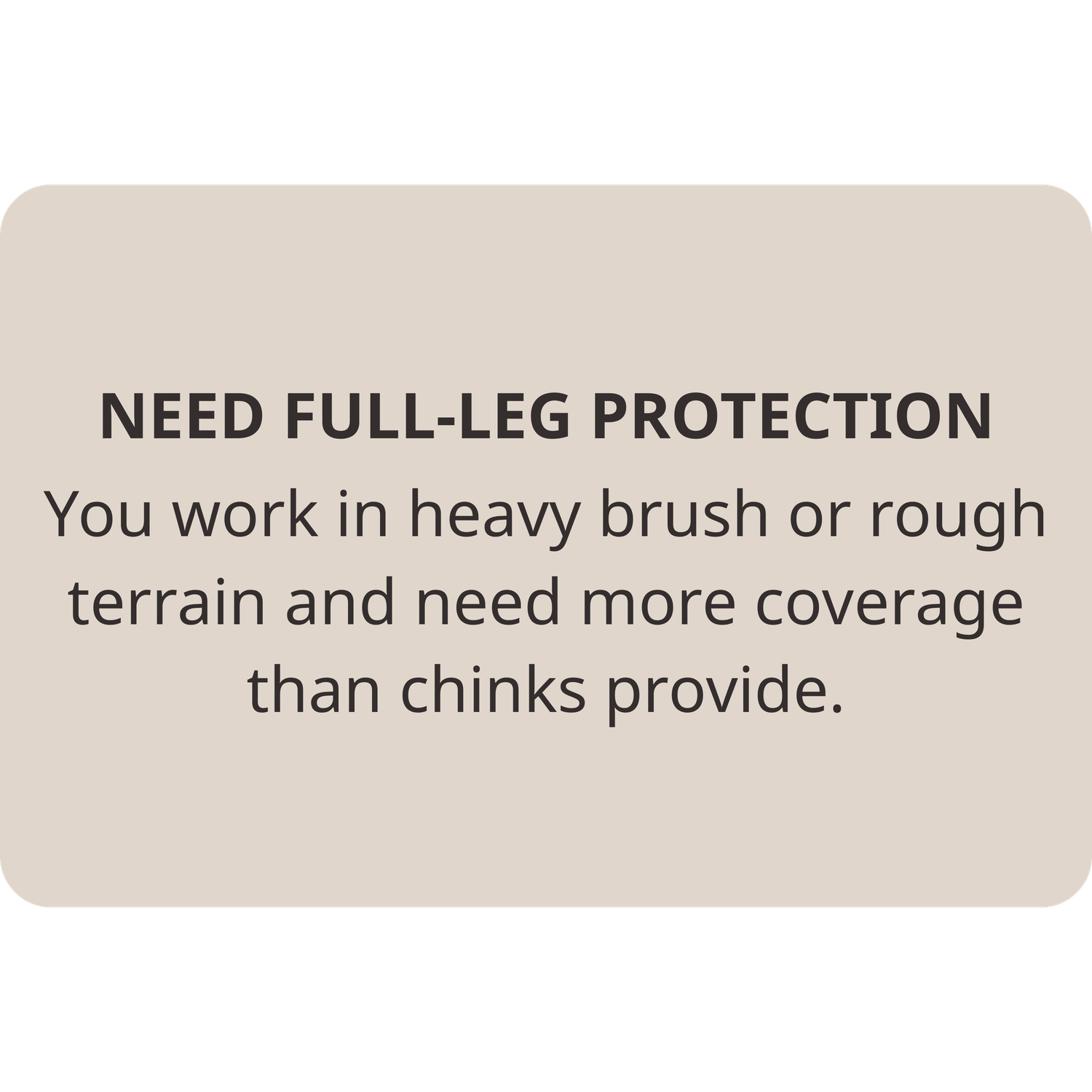 FULL-LEG SHOTGUN CHAPS. BUILT TO FIT, BUILT TO LAST.