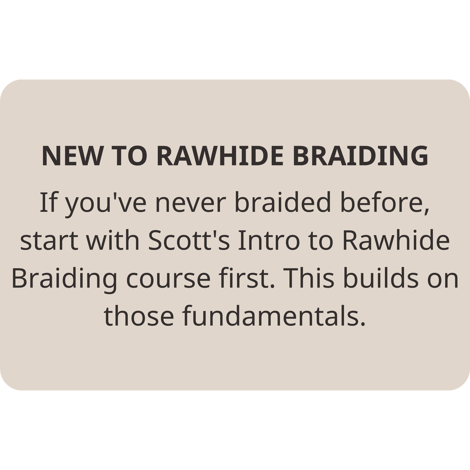 If you've already taken Scott's Intro to Rawhide Braiding course, you're set.